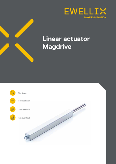MAGDRIVE是一款獨特、強大的直列式電推桿,高達6 000 N的力量適用于要求纖薄設計和安靜運行的應用。 該系列提供反傾斜和增量位置反饋等選件。該系統(tǒng)包括一個單故障安全控制單元(可用于6個執(zhí)行器)以及相應的附件。